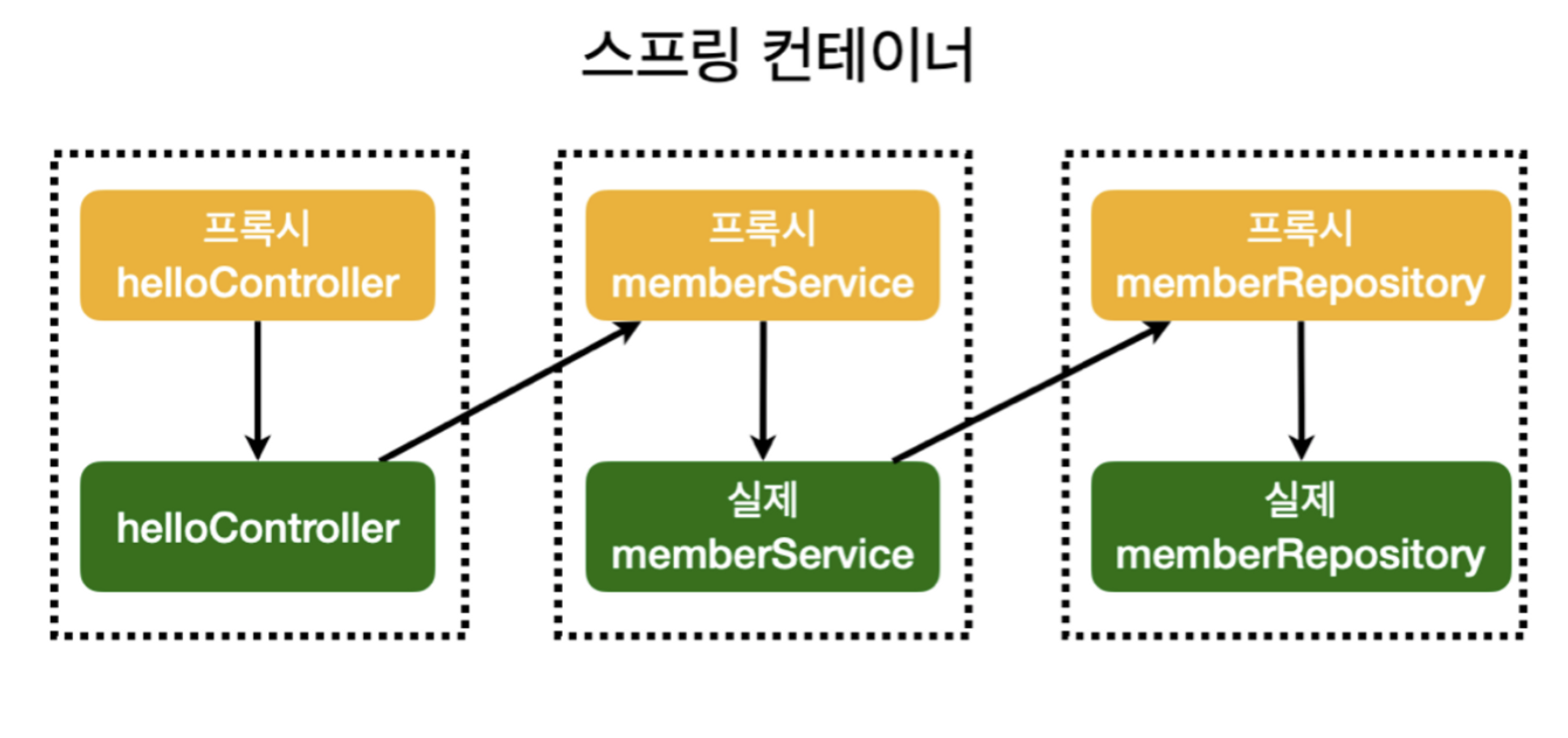 오브젝트. DI를 통해 타겟 대신 클라이언트에게 주입되며 클라이언트의 메소드 호출을 대신 받아서 타겟에 위임하며 이 과정에서 부가기능을 부여한다.