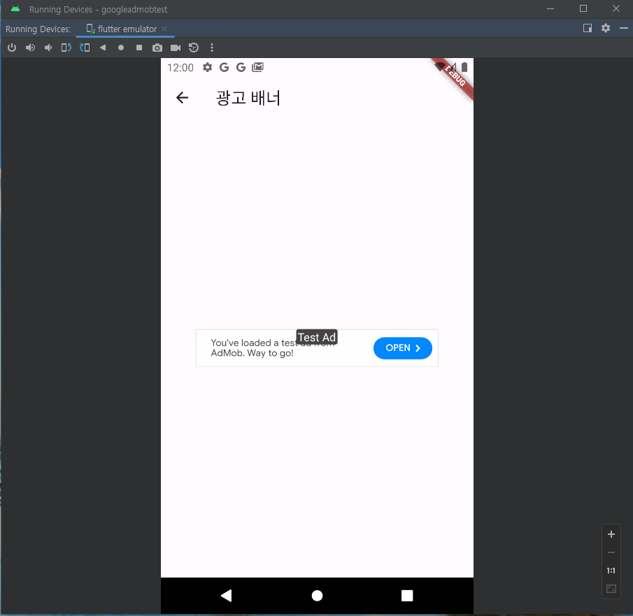 test App Id이기때문에 실제 광고를 적용하려면 실제 App Id 키값을 사용해야한다.