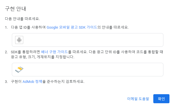 google AddMob사이트에서 회원가입후 키를 받으면 앱 Id와 Unit Id를 생성하는데