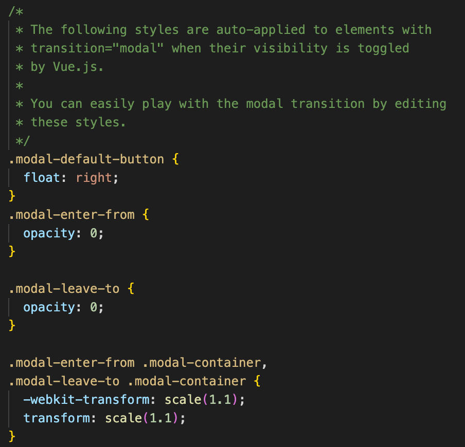 을 이용해 모달을 애니메이션 효과과 함께 나타낼 수도 있다.<Transition name="modal">