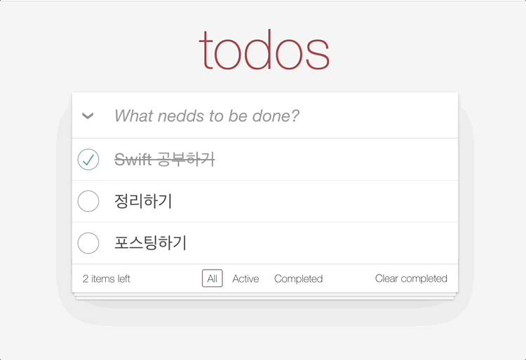 이번 포스팅은 작은 단위의 상태 state 들부터 설명하며 커지는 기능들에 대해 코드와 함께 설명을 하고자 한다. CSS 기능은 @import "https://unpkg.com/todomvc-app-css@2.4.1/index.css"; 단지 import 하였기 때문에 큰 설명은 없을 계획이다.