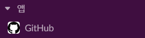 다이렉트 메세지 하단에서는 '앱'이라는 것을 볼 수 있다. 앱은 사용자가 사용하는 다른 소프트웨어(Github, Google Calendar 또는 회사 내부 도구)를 slack에 연결해준다. 사용하는 도구들을 한곳에 모아두면 작업이 수월해지고, 워크스페이스 내의 다른 인원과 더욱 효율적으로 작업할 수 있기 때문에 유용한 기능이다.