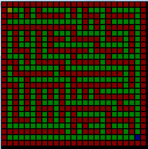 2) 초록 점마다 순회하면서 오른쪽이나 아래를 랜덤하게 선택함