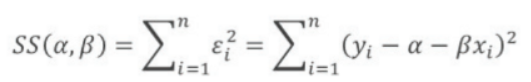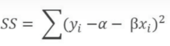 * 단순회귀모형 Yi = α + βxi + εi에서 오차의 제곱합이 최소가 되도록 α, β를 추정하는 방법.