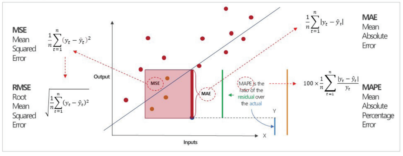 - 회귀모델 : 오차 지표(MSE, RMSE, MAE, MAPE)