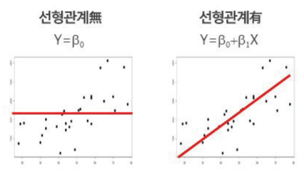 - 대립가설(H1) : X변수들은 Y변수와 선형관계까 있음(기울기 β1 != 0)