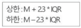 Carling : 기준은 중앙값 (Media) : 상한,하한을 벗어나는 값을 이상값으로 간주, 제거 가능