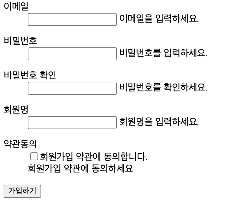 errors.rejectValue("agree", "Requered", "회원가입 약관에 동의하세요");