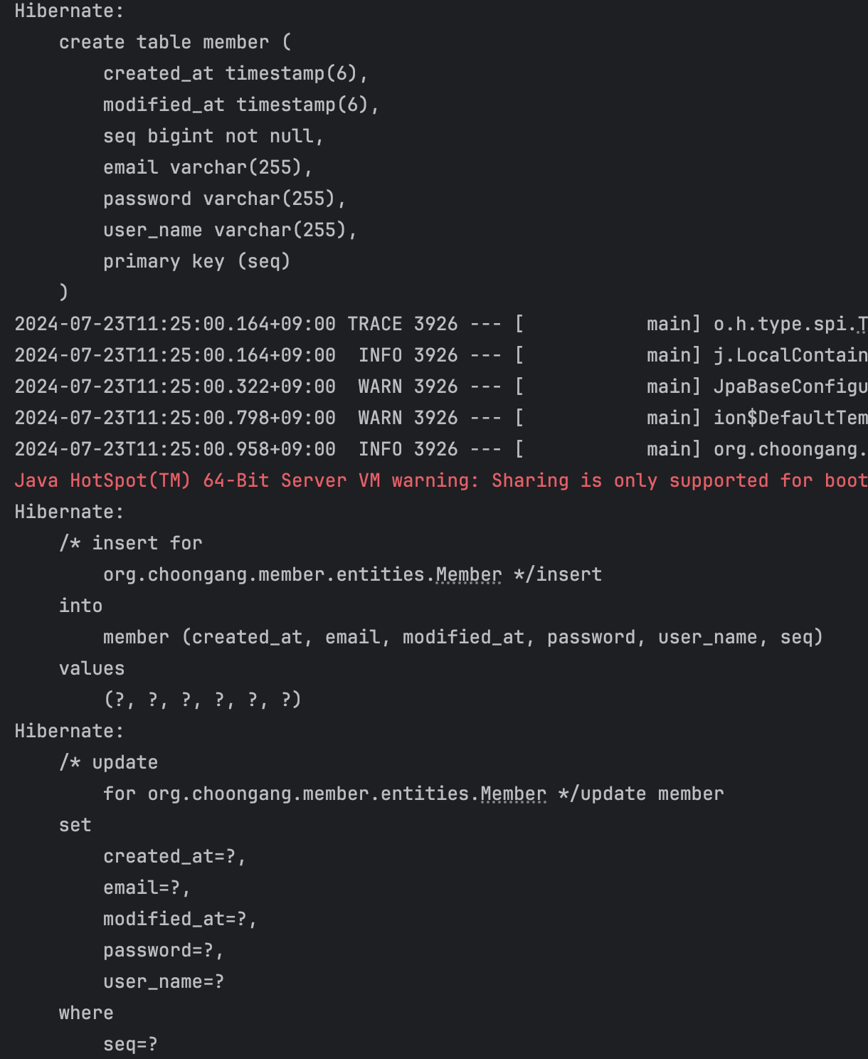 create-drop : 애플리케이션 시작시에 기존 테이블 DROP, 새로 생성, 종료시에도 DROP