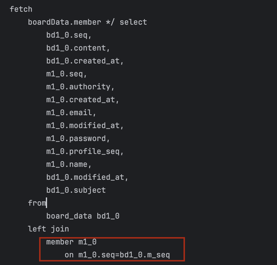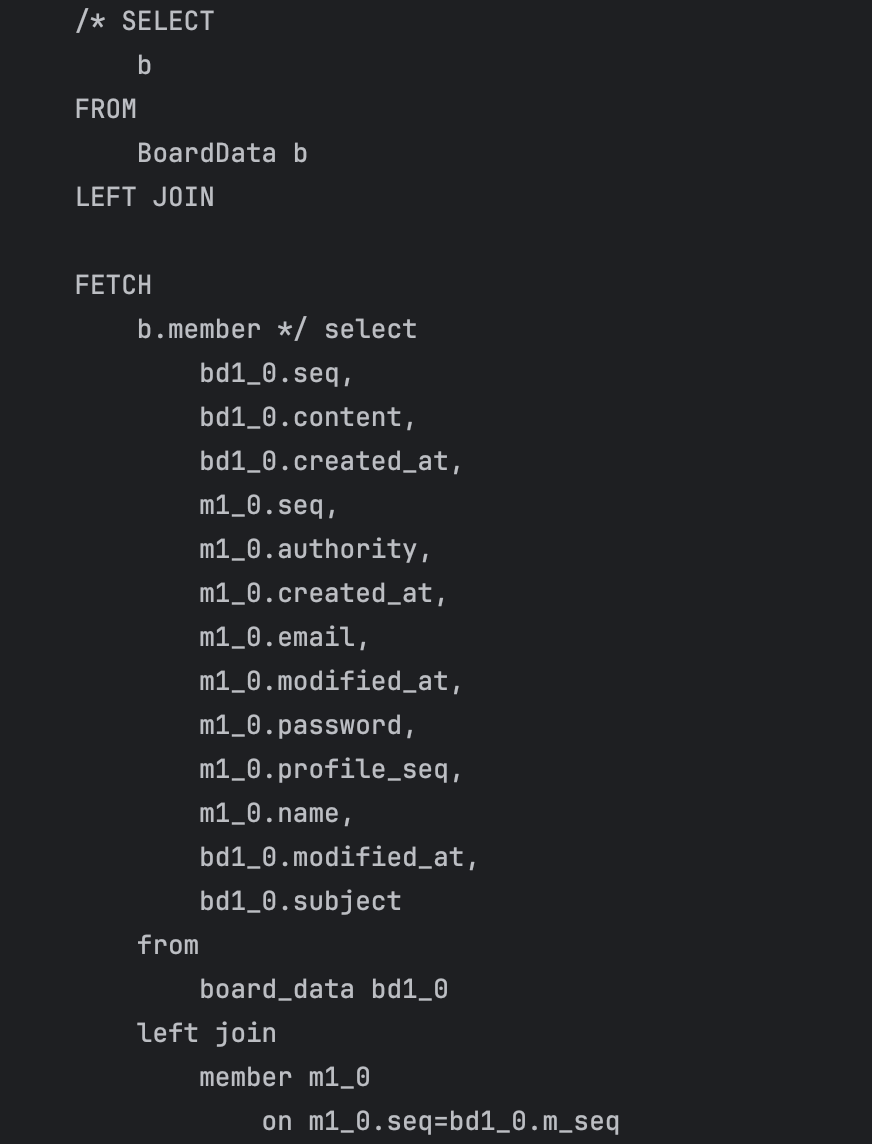 @Query("SELECT b FROM BoardData b LEFT JOIN FETCH b.member")