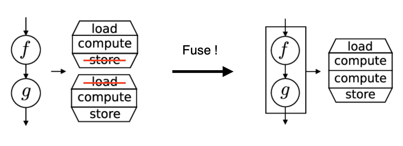 예를 들어 matmul 이후, add 연산을 해주는 두 개의 kernel 연산을 수행한다고 할 때, 이 두개의 kernel에 대한 fusion을 통해 MatMulAdd라는 하나의 kernel로 수행 가능하다.