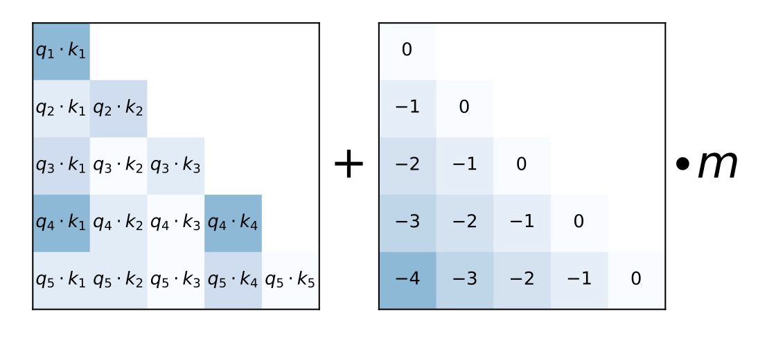 - attention score를 distance에 대해서 따로 penalize를 해주고, positional encoding을 더해주는 방식으로 동작한다.