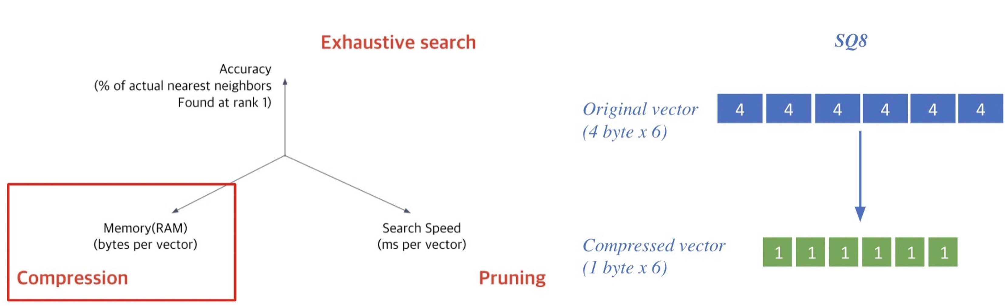 Compression의 방식 중 하나로 벡터를 압축하여, 하나의 벡터가 적은 용량을 차지하도록 하여 압축량은 늘리고, 메모리 사용량을 줄이는 방식이다. 그렇기 때문에 정보 손실량은 높다.