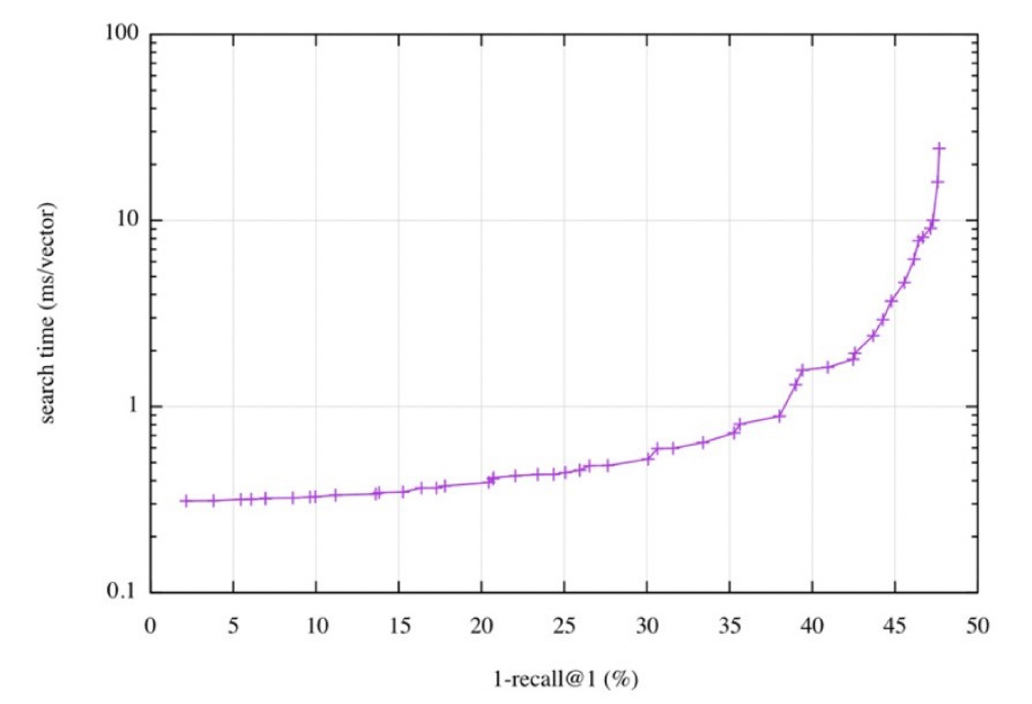 위의 그래프와 같이, 더 정확한 검색을 하려면 더 오랜 시간이 소모되는 것을 확인할 수 있다.