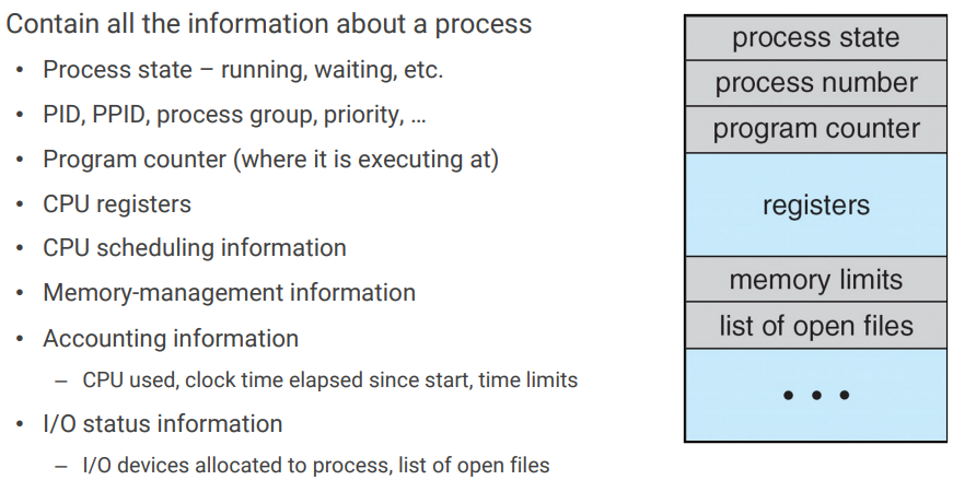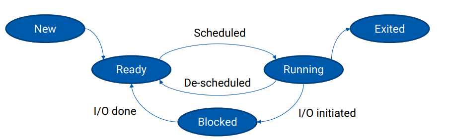 - 실행 중인 process가 자기 logic이 다 끝나거나 error가 발생하면 종료될 수 있다(terminated). 이때 process에 할당된 resource를 os가 모두 회수한다.
