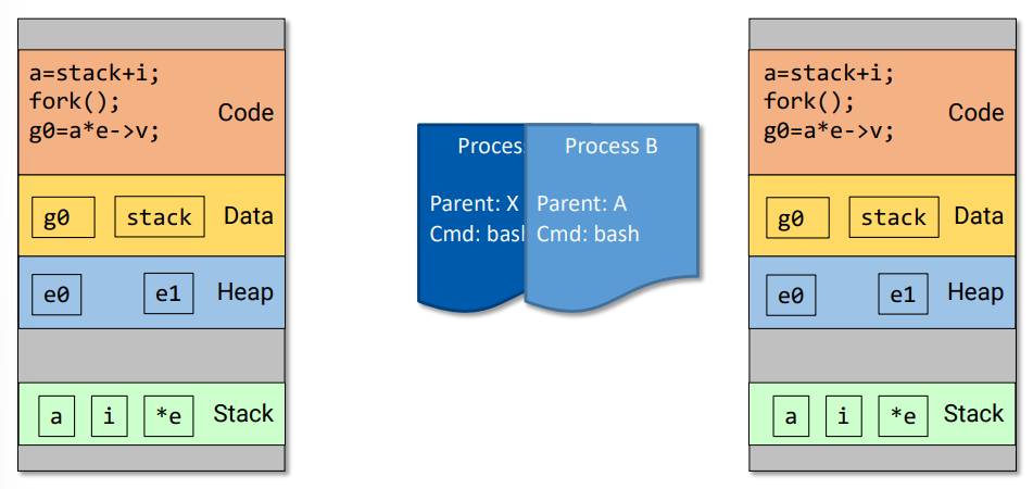 addr space를 duplicate할 뿐 sharing하는 게 아님