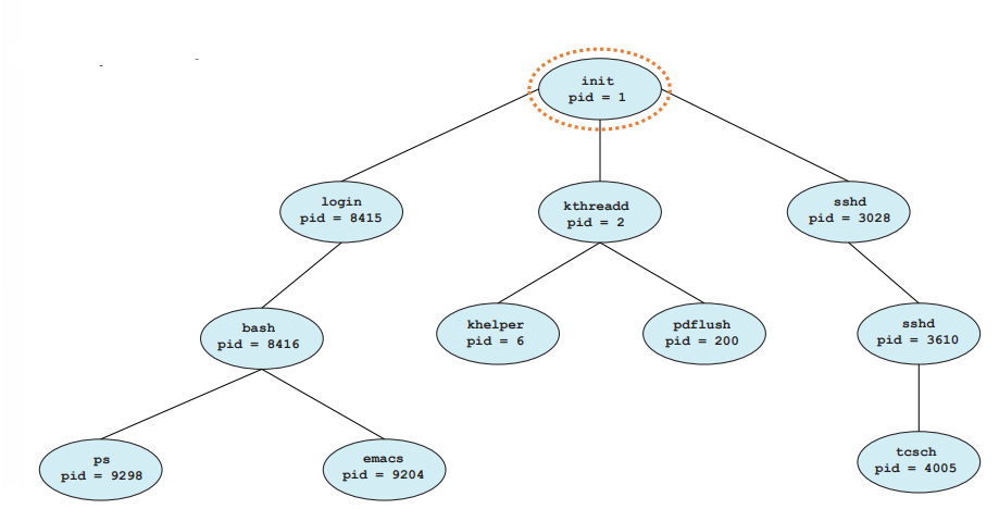 컴퓨터가 처음 시작될 때, OS는 최초의 프로세스 init을 만든다. (init은 화면 띄우는 애, 탐색기, 시계 이런 프로세스들을 만들고 이 프로세스들이 다시 필요한 프로세스들을 만든다.)