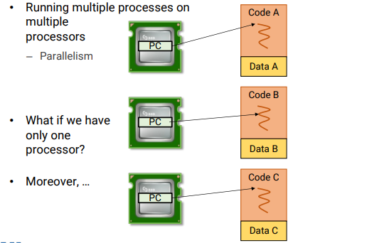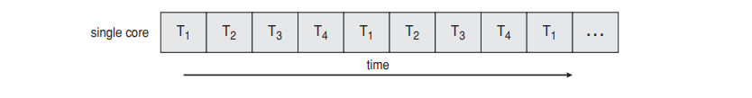 CPU가 2개 있어서 여러 process가 동시에 실행되는 경우가 있을 것이고, CPU 1개에서 여러 process가 번갈아 실행되는 경우가 있을 것이다. 거시적으로 봤을 때는 여러 process가 동시에 실행되는 것처럼 보이지만, 이걸 좀 더 세부적으로 구별할 필요가 있다.