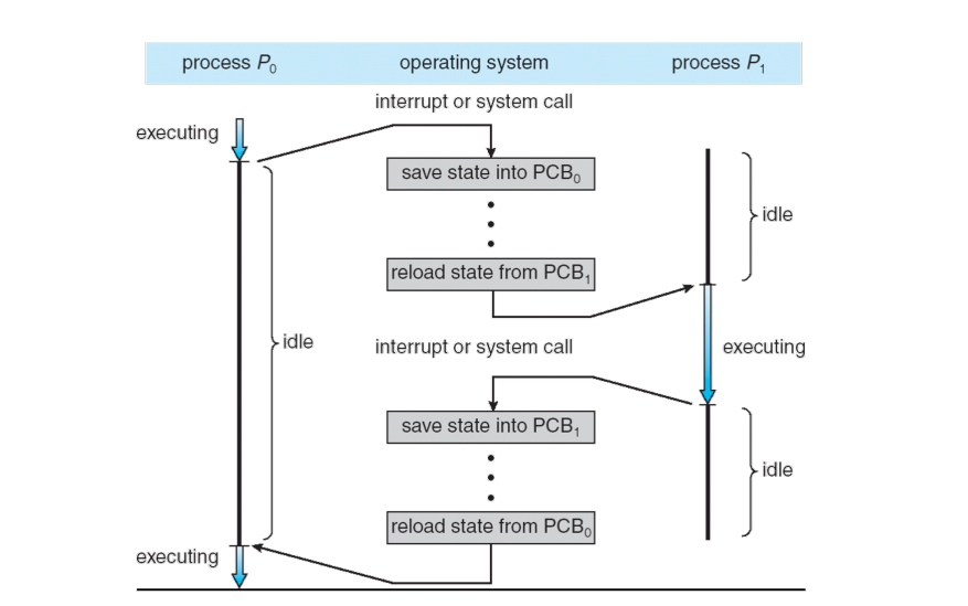 When CPU switches to another process, the system must save the state of the current process and load the state of the next process