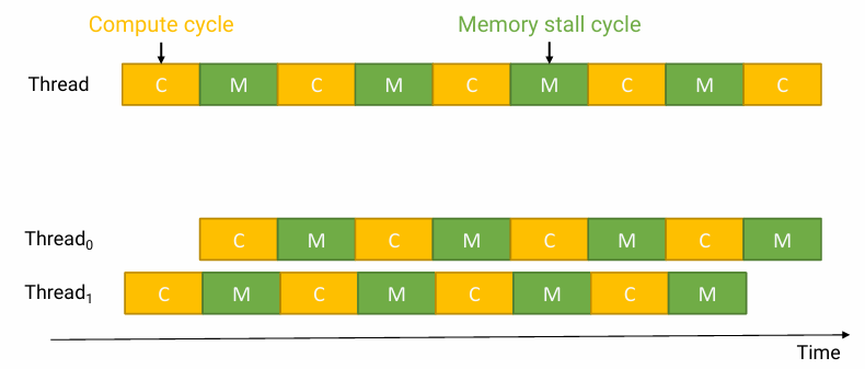 - cpu가 메모리에서 데이터를 가져오는 동안 발생하는 memory stall을 활용하여 다른 thread에서 작업을 수행할 수 있다는 의미이다.