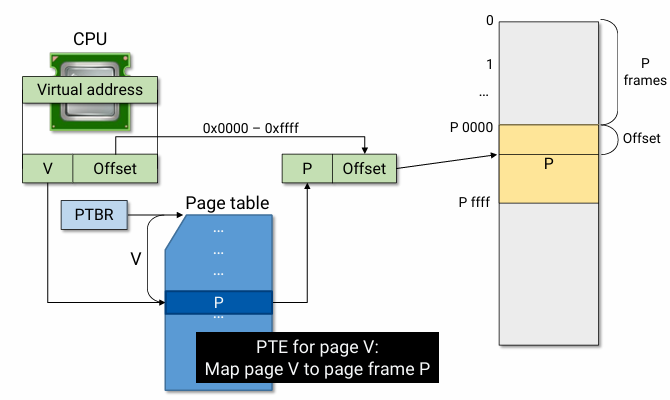 - PTBR은 현재 실행 중인 process의 page table 주소를 가리킨다.