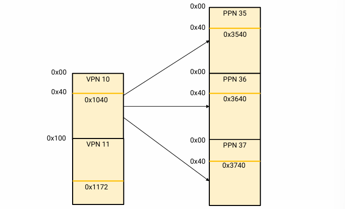 - VPN 10번 page가 PPN 35번 page와 mapping 됨