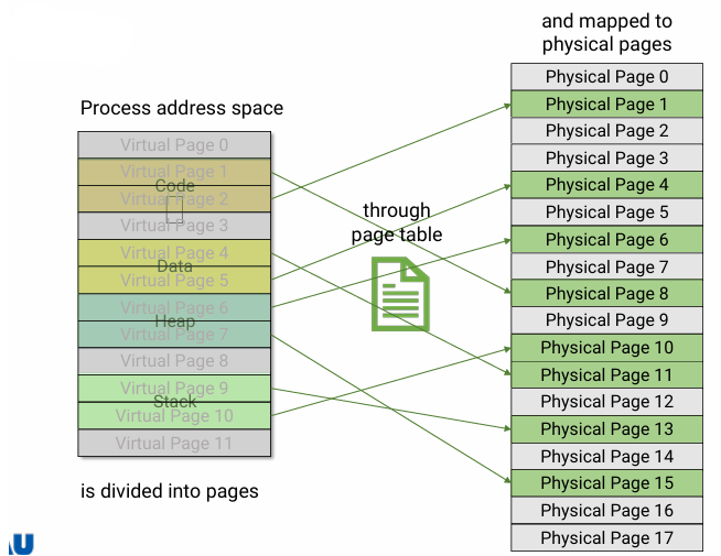 - Page size가 2nbyte일 때, binary address의 하위 n bit는 offset으로 쓰인다.