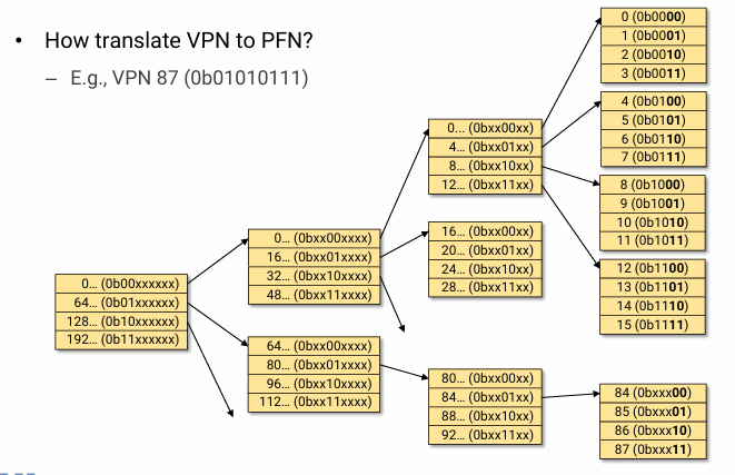 - 1 page에 PTE가 8개씩 들어간다면 VPN to PFN translation을 위해 주소를 몇 개씩 잘라 보면 될까?