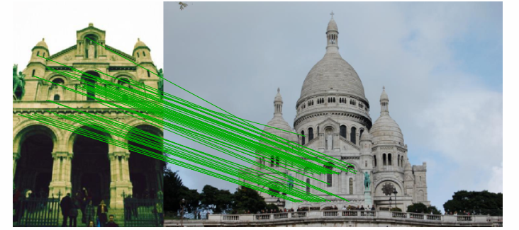 다음으로는 특징점들을 서로 매칭해 보는 과정이다. 전통적으로는 각 특징점의 descriptor 정보를 비교하여 가장 유사한 점들을 매칭하는 방식이 사용된다. 최근에는 이런 local 정보 비교뿐만 아니라, 이미지 전체를 고려한 전역적인 매칭 방법도 있다.