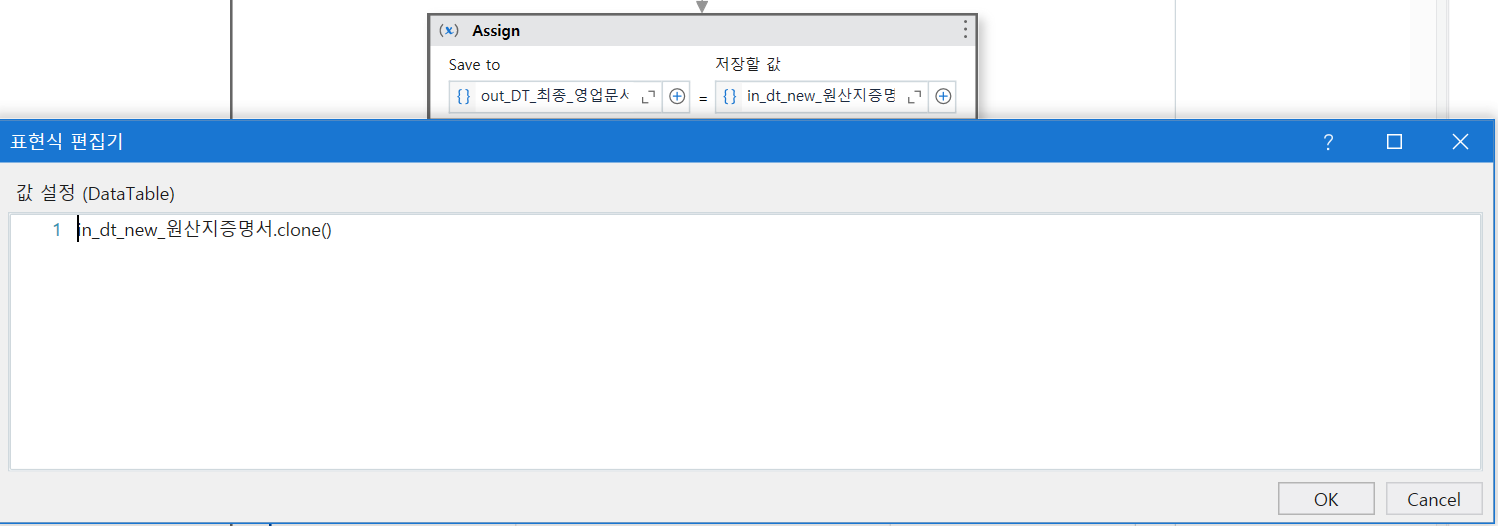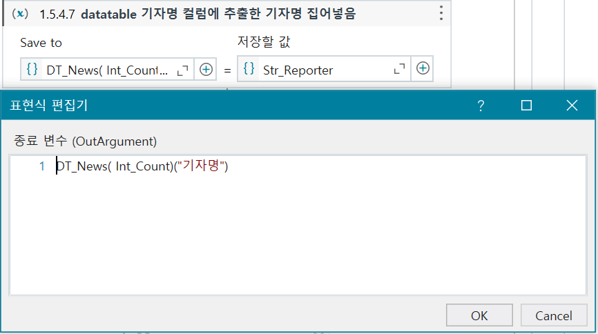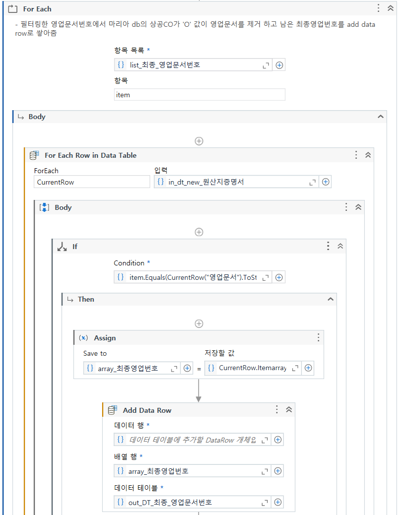액티비티 For each Row in dataTable 안에 Value 찾기
