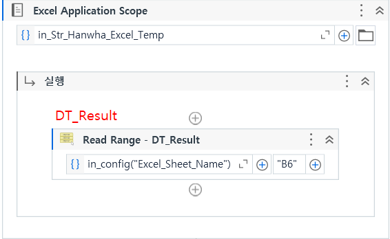 첫번째 엑셀이 들어있는 엑셀을 읽어와서 Data Table를 만들어준다 이름은 DT_Result