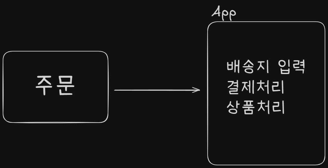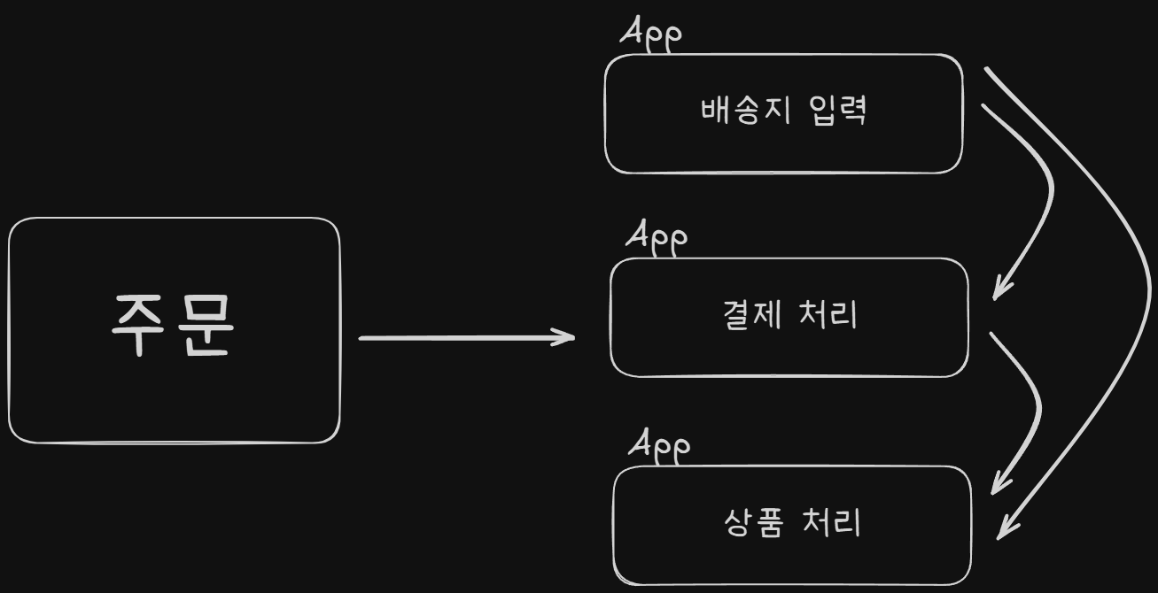 상황: "주문 → 배송지 입력 / 결제처리 / 상품처리"