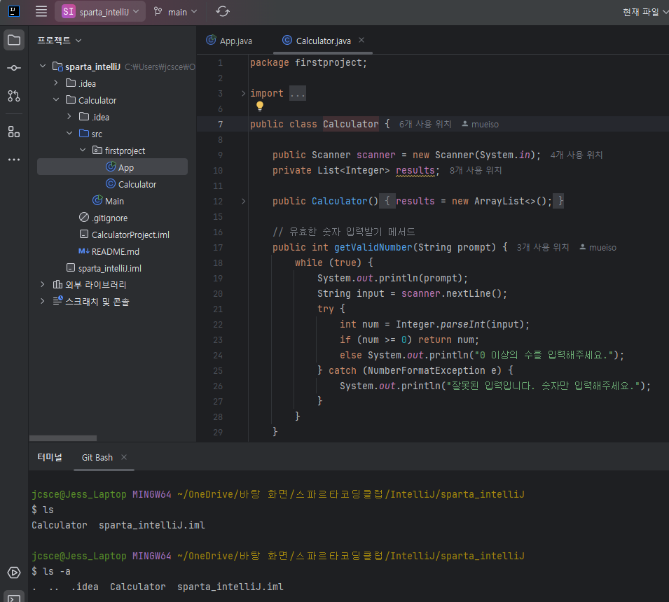 계산기 과제를 제출하는 과정에서 github에 add, commit, push 를 통해 올리고,