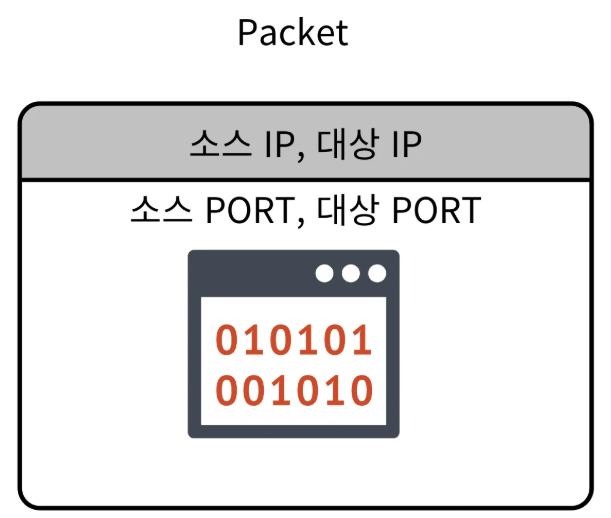 Packet 이라는 단위로 전달Packet : 소스 IP, 대상 IP를 포함하고 있어서 어떤 컴퓨터에 데이터를 전송할지 판별할 수 있다