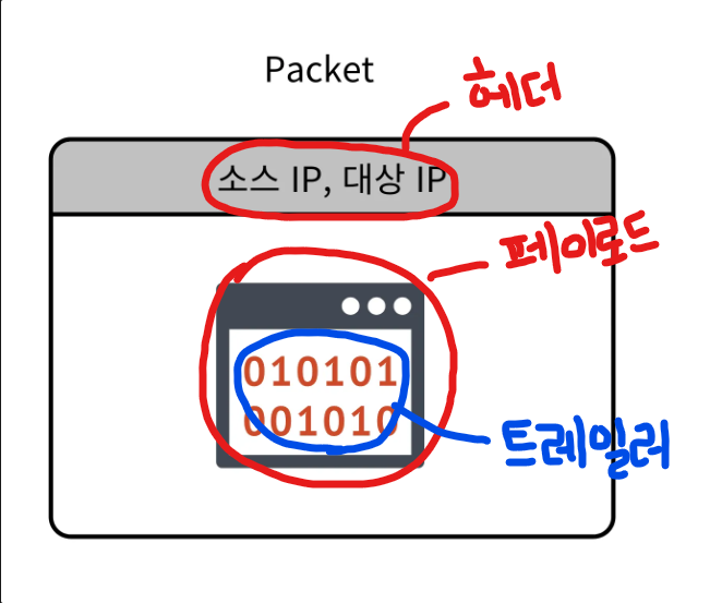 크게 헤더, 페이로드, 트레일러(수신여부 포함)로 구분