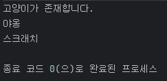 System.out.println("고양이가 존재합니다.");