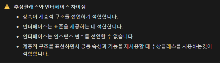 ⚠️ 주의사항 : 업캐스팅은 부모의 타입으로 데이터를 다룰 수 있지만 자식 클래스의 고유기능을 활용할 수 없다 → 자식 클래스의 고유 기능을 사용하려면 다운캐스팅이 필요