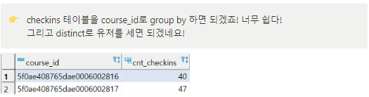 select course_id, count(distinct(user_id)) as cnt_checkins from checkins