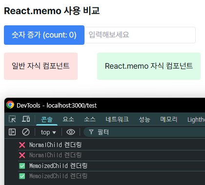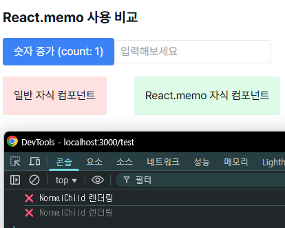 <h2 className="text-xl font-bold">React.memo 사용 비교</h2>