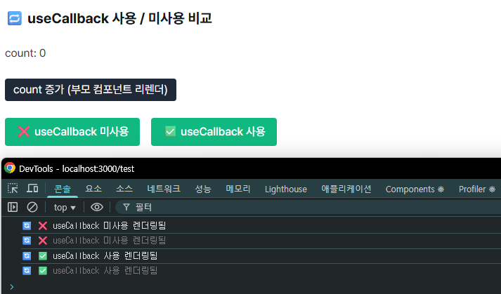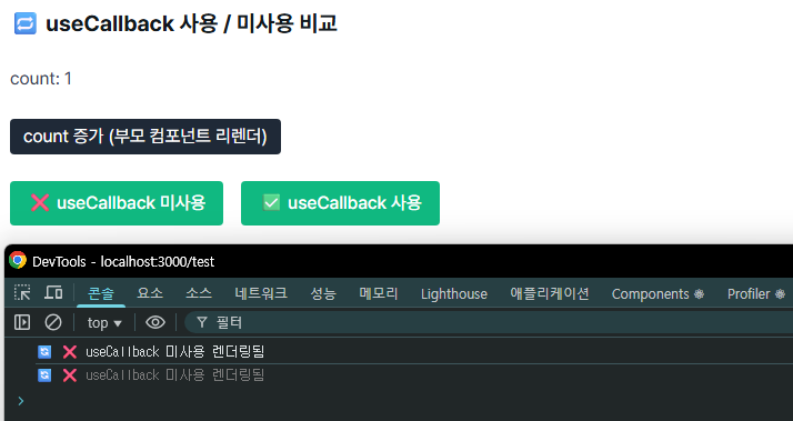<MemoizedButton label="✅ useCallback 사용" onClick={withCallback} />