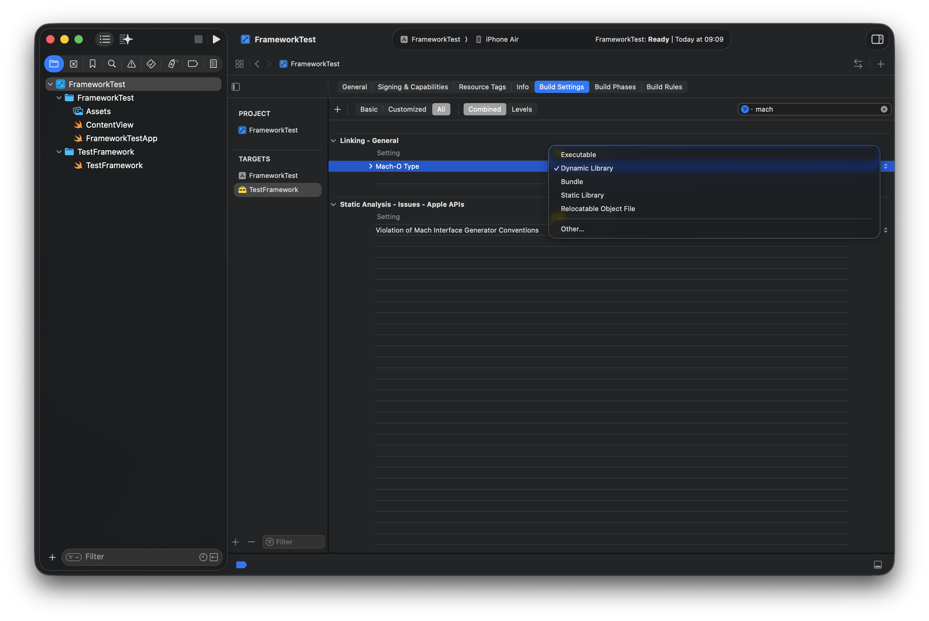 프레임워크 타깃 > Build Settings > Linking > Mach-O Type을 확인해 보면, 여러가지 링크 옵션이 나타나는데, 여기서 Dynamic Library와 Static Library에 대해서 알아보자.