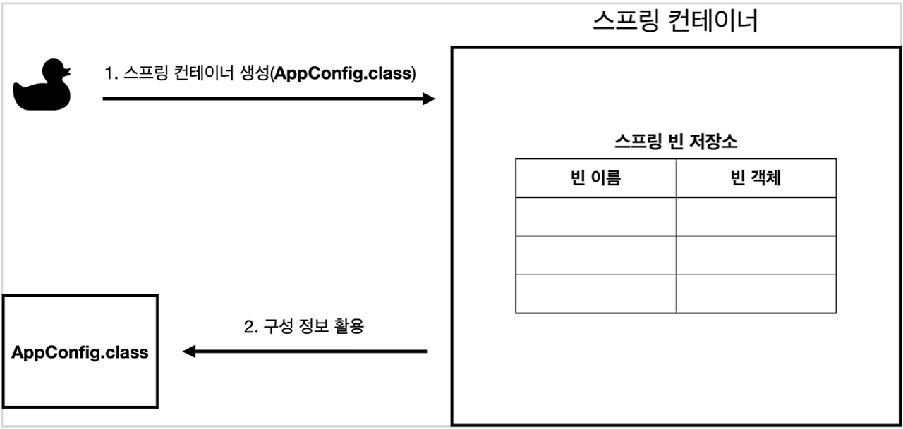 스프링 컨테이너는 파라미터로 넘어온 설정 클래스 정보를 사용해서 스프링 빈을 등록한다.