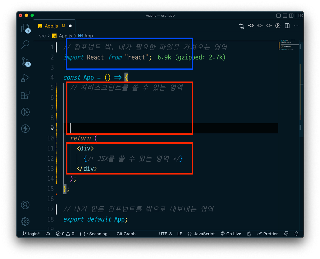 js사용하는 묘듈이란 개념하고 유사하며, 독립적인 단위 묘듈이라고 불린다. react 라이브러리 기반으로 만들어진 웹사이트를 만들면 무언가 분리된 영역별로 나눠저있고 동작하는것을 볼수 있는데 그 나눠진 영역들이 컴포넌트다.