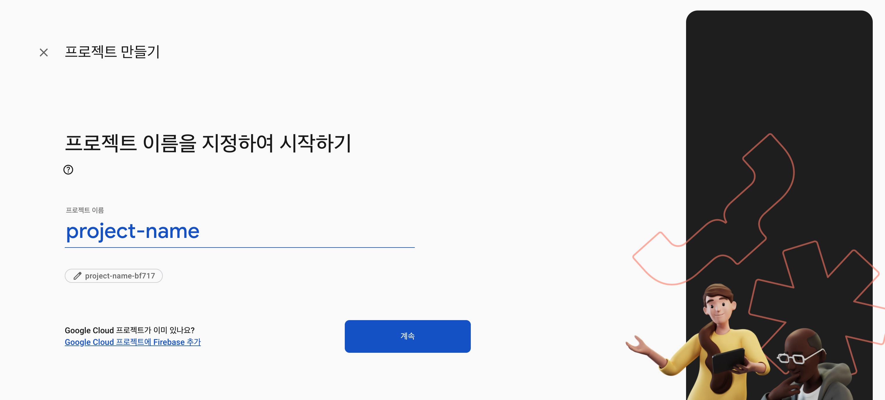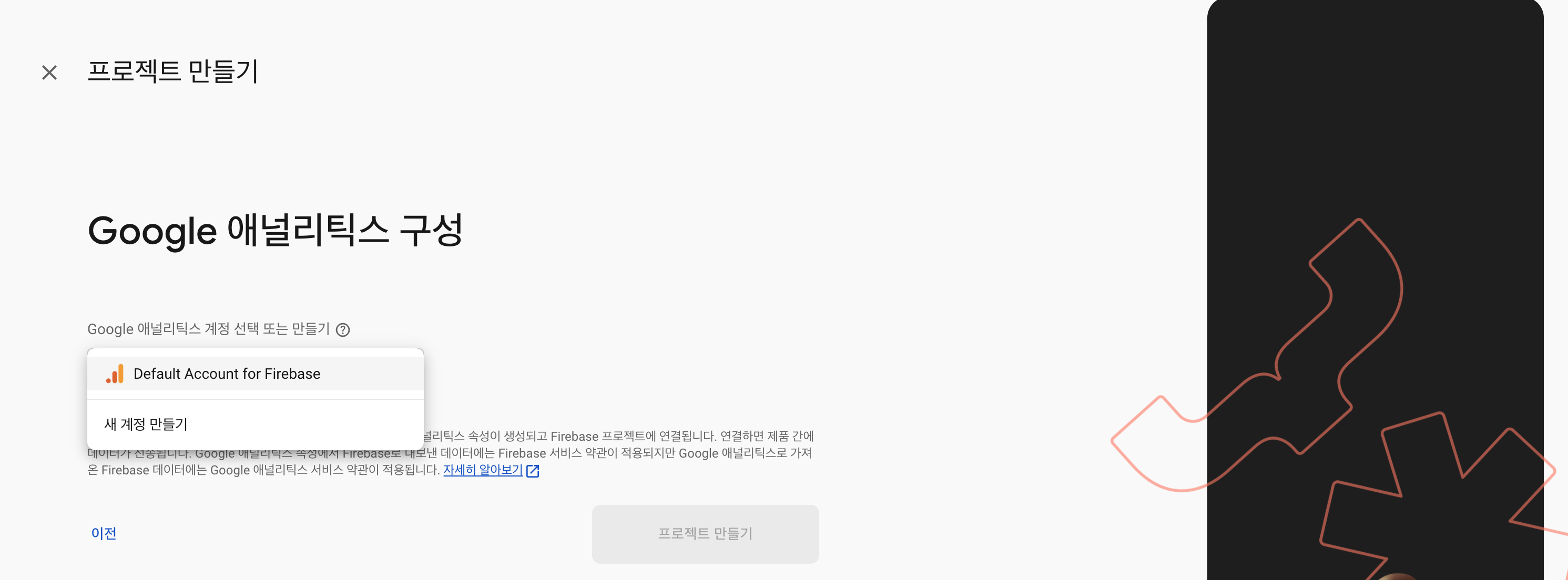 -> 앱 및 웹 애플리케이션의 사용자 동작 및 이벤트에 대한 데이터를 수집하고 분석하여 앱 또는 웹의 성능을 파악하고 개선하기 위한 google 애널리틱스 를 설정 후 프로젝트 만들기 진행