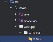 View Resolver 설정에 등록한 것과 같이 JSP 웹페이지를 등록할 수 있게 src/main 폴더 하위에 webapp/WEB-INF/views 폴더를 생성한다.