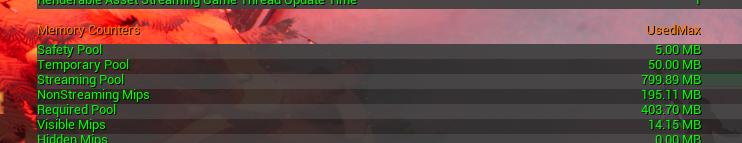 0은 텍스처의 최대크기를 사용하는 값이다. 이값들을 전부 1024로 맞춰주니 required pool 사이즈가 확 내려갔다.