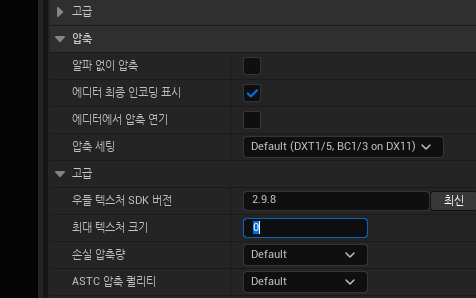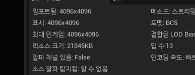 이런식으로 디테일의 고급창에 최대 텍스쳐 크기를 조정할 수 있다.