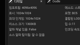 저런 경고를 띄운다고 한다. 위 이미지는 텍스쳐 크기 조정 후의 사이즈고
