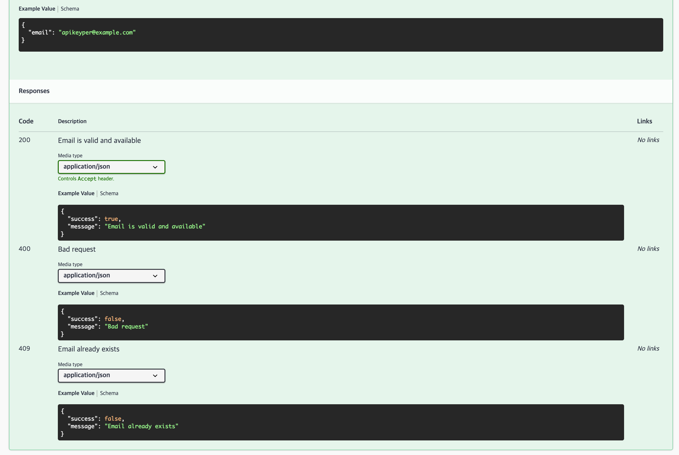 application/json:
