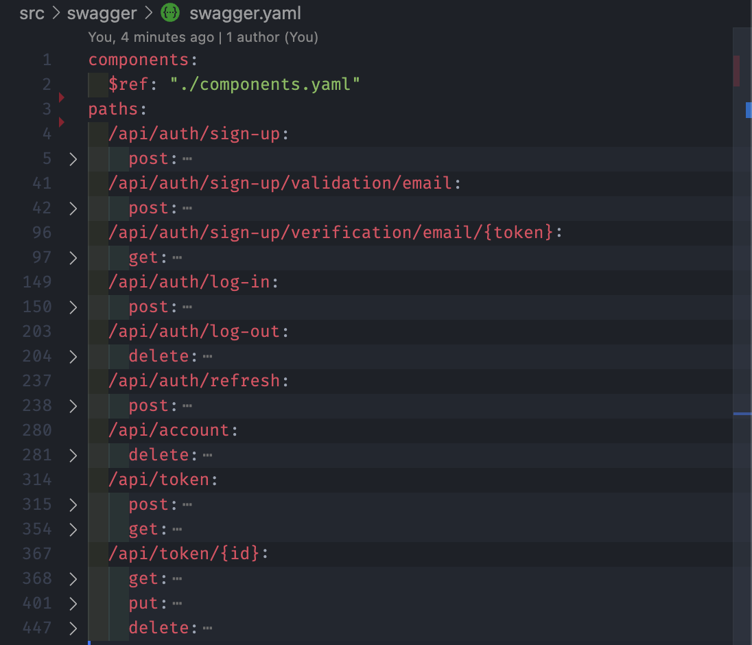 오늘은 2번 방법으로 별도의 .yaml 파일에다가 api 문서를 작성했다.